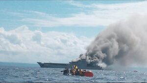 Navy warship KRI Teluk Hading 538 catches fire in Selayar Islands waters, South Sulawesi, all crew save