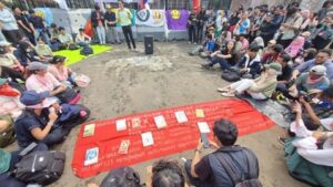 Students gather for ‘picnic protest’ outside DPR/MPR building in Jakarta