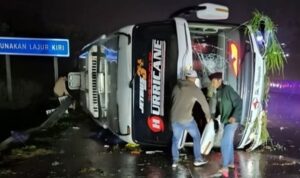 Bus overturns on Batang toll road in Central Java, leaving 3 dead, 20 injured